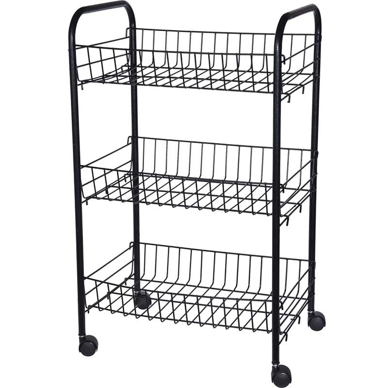 Organiseer je keuken of werkruimte met de Ceruzo keukentrolley met 3 draadmanden. Dankzij de 4 zwenkwielen is de trolley gemakkelijk te verplaatsen en flexibel inzetbaar. De matzwarte metalen constructie biedt een strak en modern design, terwijl de inbegrepen 3 kunststof inlay matjes extra stabiliteit en hygiëne geven.